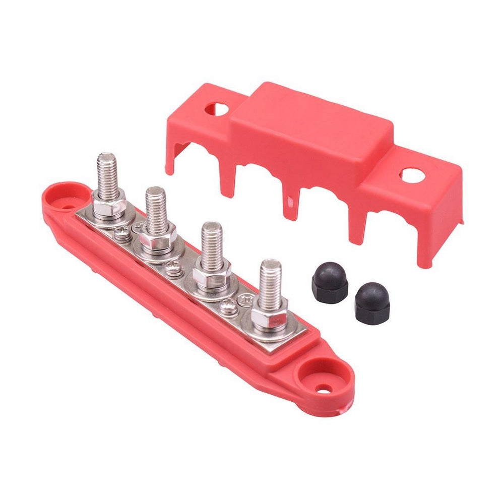 250A 4 Stud M8 Busbar with Cover Red